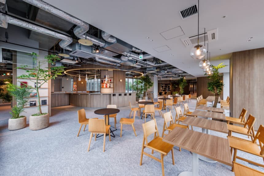 全館無料Wi-Fi接続完備で、カフェからおいしいドリンクの提供もあり、快適なワークライフをお楽しみいただけます。喫煙所も同ビル内にあります。
