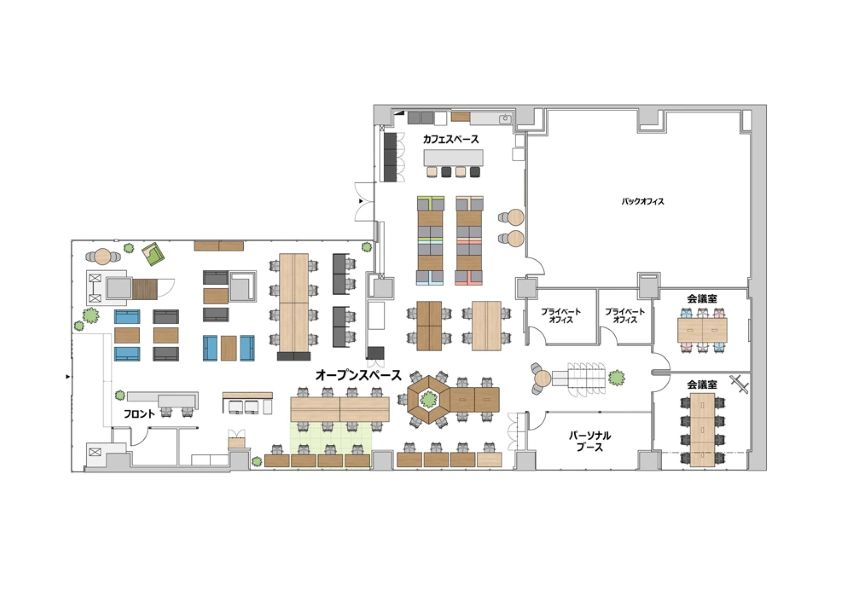「THE HUB 有楽町 EAST」は交通アクセス抜群の有楽町エリアにあるシェアオフィスで、東京駅を含む「5駅17路線」が利用できる点が大きな魅力です。ビジネスをするにはとてもよい立地です。 また、オフィスのデザイン性も高く、完全個室のオフィスには洗練された家具が完備されています。コワーキングスペースについても、開放的でありながら落ち着いた雰囲気があり、程よい緊張感で仕事に取り組むことができるでしょう。