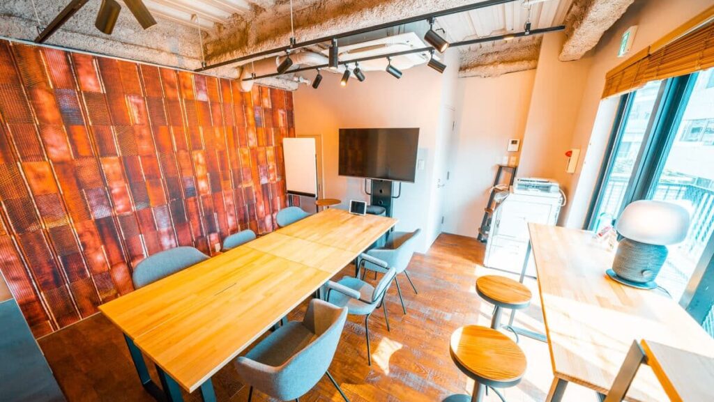 窓際の席は景色が素晴らしかったです。部屋も広かったので会議中の窮屈感がなくモチベーションも上がりました。座席もゆったりとしていて快適に会議ができ、カフェのようなリラックスした雰囲気で話し合いが進みました。 唯一気になったのは、インターネット回線が悪かったことです。会議中に司会の人がパソコンの画面を開きながら解説する場面があったのですが、時々次のページに進まなくなることがありました。 それ以外は非常に満足でした。