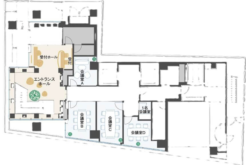 BizMiiX(ビズミックス)淀屋橋は、シェアオフィス・コワーキングスペースの企画運営代行事業を行っているReqree株式会社が運営する、ビジネスに特化したセットアップ型サービスオフィスです。オフィスビルの1~9階まですべてのフロアをレンタルオフィスとして提供しており、各ブースの広さや形態もさまざま。内装は都会的で落ち着いており、多種多様なニーズにマッチングする多彩なオフィスプランと充実したサービスを提供しています。