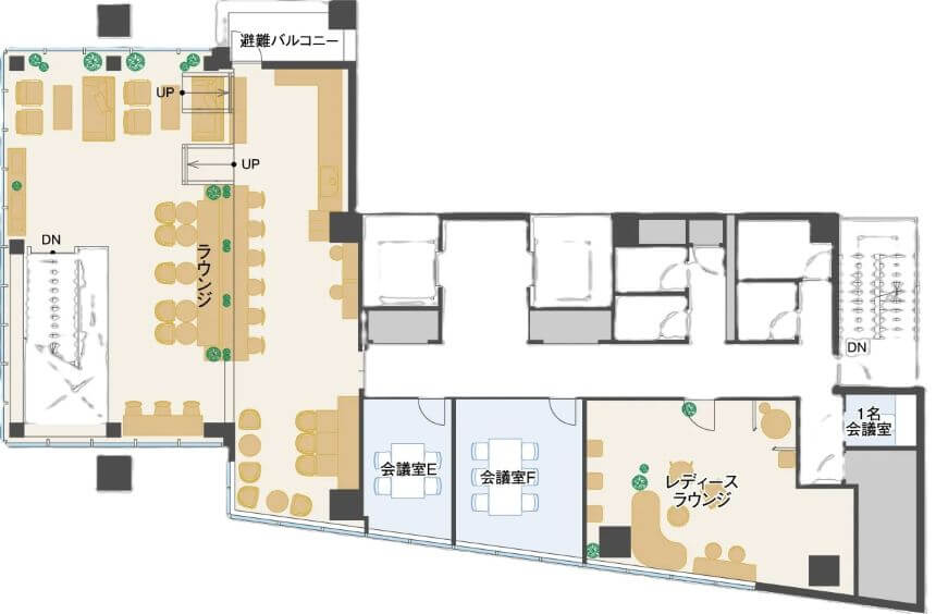 「WORKING SWITCH ELK(エルク)」は、最寄り駅から3~5分、7駅7路線が乗り入れており多方面からのアクセスが可能です。ソファ席やベンチシート、ビッグテーブルの席など様々なスペースがあり、館内はたくさんの緑が溢れています。イベントスペースなどの用意もあるので、セミナーやイベントの開催を考えている方にもおすすめです。 予約なしでご利用いただけるドロップインプランがあるので、テレワークの気分転換や営業の合間の作業場にも利用できます。平日だけでなく土日も利用できるので、休日に少し作業をしたいという方にもおすすめです。