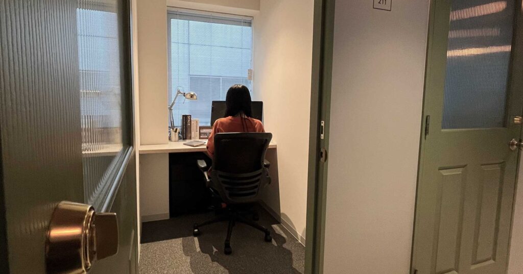 実際に利用してみると、コワーキングスペース内は思った以上に静かで、隣の席との距離も適度に確保されており、集中して作業ができました。フリードリンクの他にも軽食やおにぎりが提供されており、長時間作業している際にもとても助かりました。ただ、Wi-Fiの接続が安定しない場所もあり、オンライン会議時に若干の支障を感じる場面もありましたが、全体的には快適に過ごすことができました。