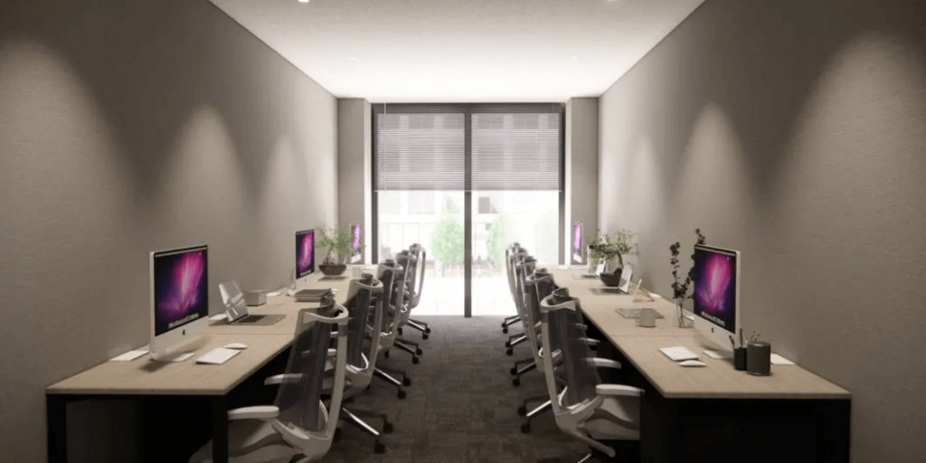 「SENQ 淀屋橋」は、大阪市中央区に位置するコワーキング兼レンタルオフィスです。大阪メトロ御堂筋線「淀屋橋駅」直結しているため、利便性がとても優れています。2025年7月に開業したばかりの新しいオフィスで、コワーキングスペースや家具付き個室オフィスを備えています。法人登記・来客対応・チーム利用まで幅広く対応でき、働き方に合わせて柔軟に使える点も魅力です。内装は木目とグレーを基調とした落ち着いたデザインで、大きなガラス窓から自然光が入り明るい空間です。ソファ席や植物が配置されたラウンジは開放感があり、洗練された上質なワークプレイスです。