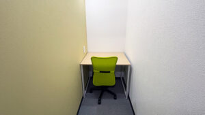 個室はプライバシーに配慮された専用スペースとなっており、集中して作業しやすい設計です。デスクや収納を配置しやすいシンプルな間取りで、日常的な業務に対応できます。落ち着いた内装のため、長時間の作業でも快適に過ごしやすい点が特徴です。