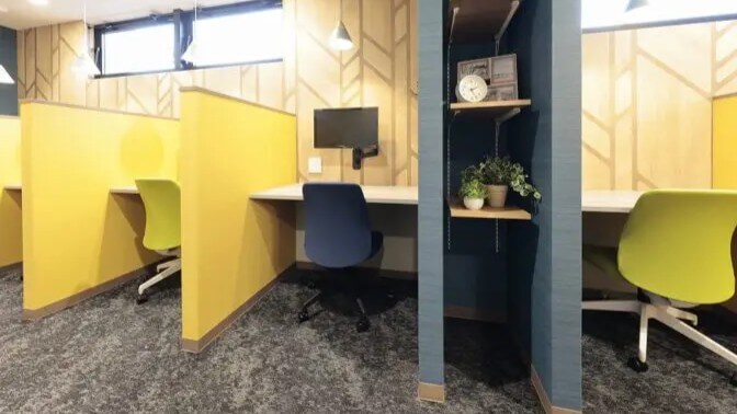 利用者であれば誰でも利用できるコワーキングスペースは、鮮やかなデザインを施された、働きやすくリラックスもしやすい癒し空間を実現しています。食事や休憩はもちろん、学習や仕事でも快適に過ごせるでしょう。間仕切りのある席やソファ付きの席も用意されています。