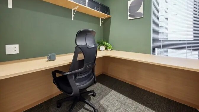 1-6名まで利用人数に合わせて選べる個室が複数用意されています。各個室は意外と広めで、家具も設置されていますが余裕が感じられます。窓付きの個室もあり、外光を取り入れた快適な空間で作業が可能です。また、6名用の会議室やテレフォンブースもあり、静かな環境で打ち合わせや通話を行えます。