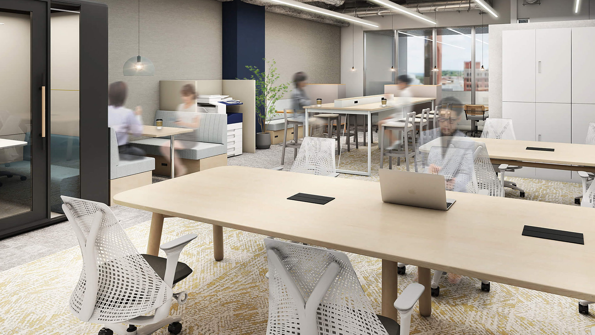 個室は1〜4名で利用できる小型区画と5~10名で利用できる中型区画、最大30名で利用できる大型区画が完備されています。大型の窓を採用した区画もあり、品川港の景色を楽しむことができます。自然光や照明を取り込みやすく、閉塞感を感じにくい設計が特徴です。デスクや収納を配置しやすい広さが確保されており、落ち着いた色調の内装が集中しやすい環境を作り出しています。