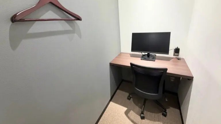 1名用の半個室から最大6名までの完全個室まで完備しています。各個室ではモニターの無料貸し出しが可能で、完全個室にはキャビネット付きの机や個別空調も備わっています。有料で住所登記やロッカーの利用も可能です。