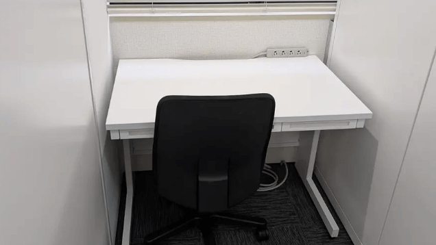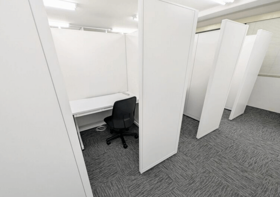 月額2万円台で利用できるカーテン仕切りの半個室タイプが設置されており、カーテンを使えば最低限のプライバシーは保護されます。5分以内でのみ自席での通話やWEB会議が可能で、それ以上の使用の場合には、無料のTELブースを利用することも可能です。