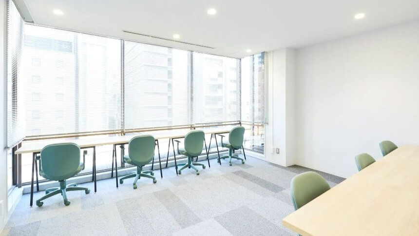 六本木の中心にありながら、静けさや落ち着きを重視したデザインが印象的なオフィスです。白と木目の柔らかい色味がメインで、圧迫感の少ない家具配置が作業しやすい空気を作っています。個室はシンプルで清潔感のある内装が魅力です。共有スペースも自然光が入りやすい明るさで、ちょっとした作業や資料確認などにも最適です。ビジネス街の雰囲気を感じつつも、落ち着いた空間で仕事がしたい人にぴったりのオフィスです。