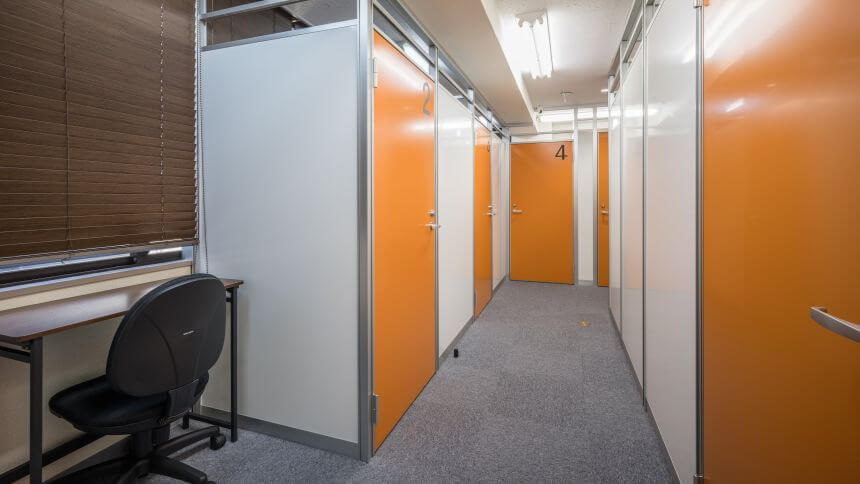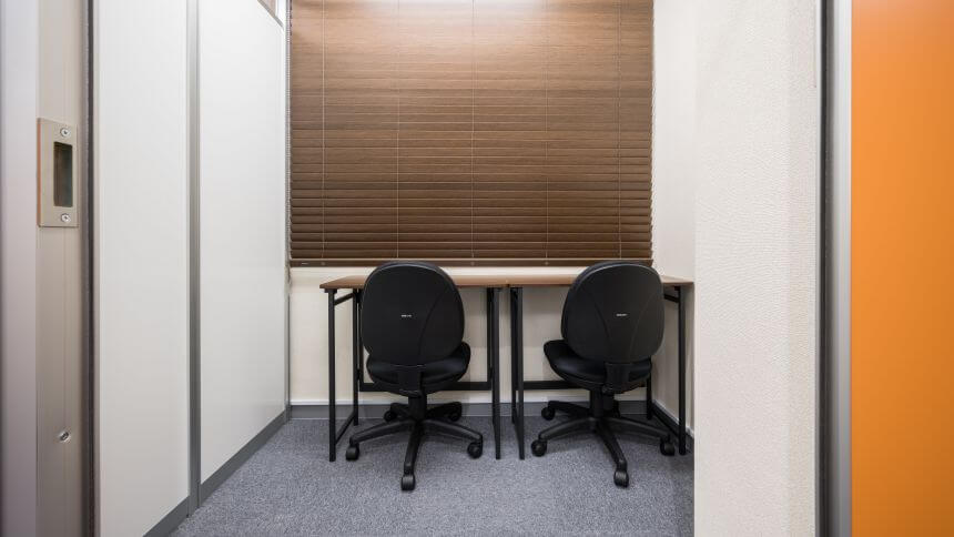 1名から利用できるブース型個室が複数揃っています。シンプルな室内にデスクとチェアが用意されており、ホワイトカラーの壁紙で落ち着いて仕事が行えます。個別に鍵も付いているため、セキュリティ面も安心できるでしょう。多人数で利用できる会議室は事前予約が必要となります。