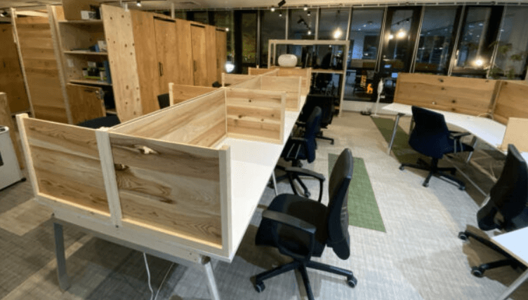 1名で利用可能な専用デスクが完備されています。地元の材を活かした間伐材のシェアオフィスで、ナチュラルな雰囲気が魅力です。契約者は1階のコワーキングスペースと2階のシェアオフィスを利用できます。