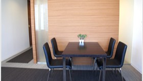 幅100cmのデスクが完備された共用ブースがあります。空席を指定し、好きな時間に利用が可能です。24時間利用可能な会議室とリフレッシュスペースも併設されているため、柔軟なワークスタイルにも対応できます。