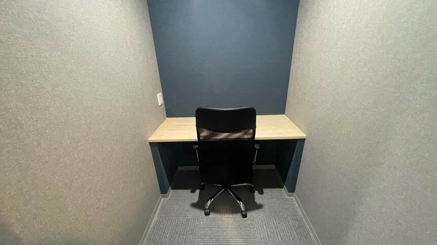 ビルの4階に1名から2名向けの小規模な完全個室が合計15部屋用意されています。24時間利用できるため、自分の好きなタイミングで作業できる点も大きな魅力です。最短契約期間は2ヶ月で、短期利用を希望する方にも適しています。