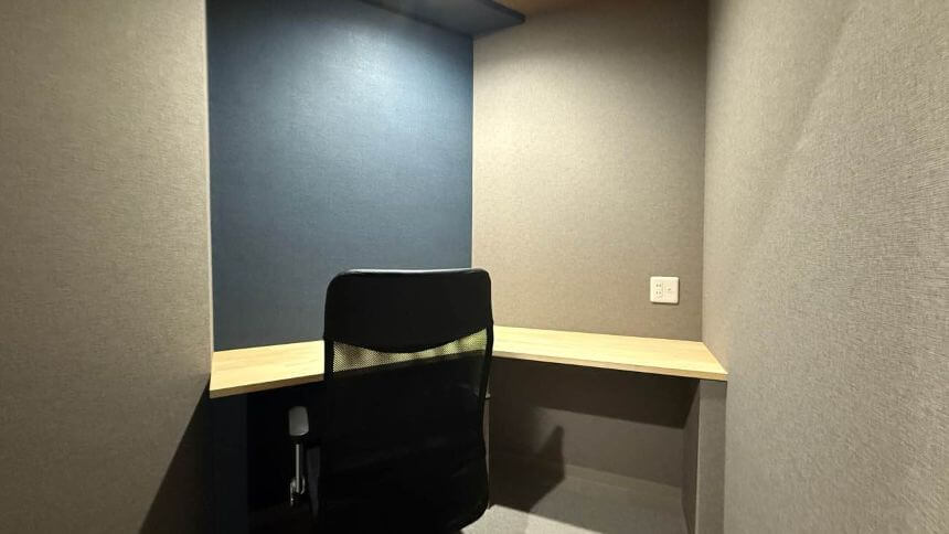 このオフィスの魅力は、そのシンプルさにあります。部屋の色合いは落ち着いたトーンで統一され、ゆとりのある空間が設計されています。個人作業に集中しやすいため、個人事業主やフリーランス、これまで自宅でテレワークをしていた方などにおすすめです。また、一部の部屋には電動の昇降式デスクが設置されており、スタンディングデスクとしても利用できるため便利です。24時間利用可能で、利用者の好きな時間に活用できます。