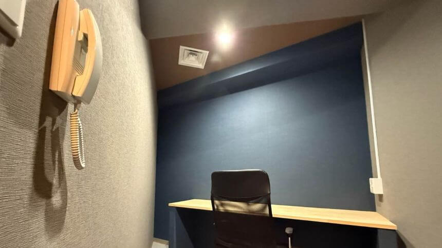 1名から2名向けの小規模な完全個室が提供されており、月額費用は要問い合わせとなっています。付帯サービスとしては、椅子やデスク、Wi-Fiなどの基本的なオフィス設備に加え、法人登記も可能です。設備を必要最低限にすることでリーズナブルな価格を実現している点が、「スペラボ」の特徴です。各個室にはインターフォンも設置されており、来客とのやり取りもスムーズに行えます。ラウンジや会議室などの共有空間は完備されていません。
