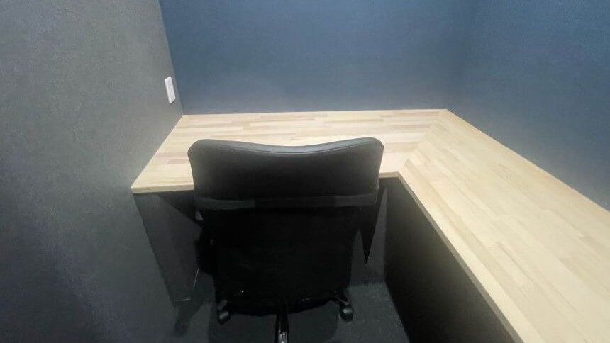建物の3階には、合計15部屋の完全個室が用意されています。個室は24時間利用可能で、生活リズムや働き方に合わせて活用できます。契約は最短2か月から可能で、長期契約にも対応しています。
