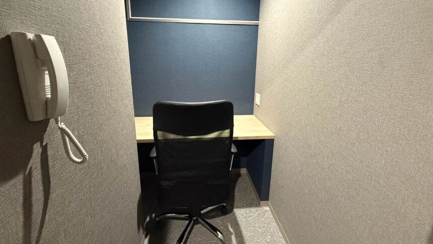 13の1名用個室と、1つの2名用個室が並ぶ、シンプルな完全個室タイプのオフィスです。各部屋には個別に鍵が掛けられ、入り口からインターホンで直接部屋と連絡が取れるため、荷物の配達などでも機密性が保たれます。個別エアコンをはじめ、デスクやチェアといった基本設備が整っているため、入居したその日からすぐに仕事を始められます。