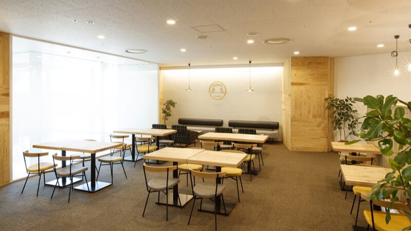 92㎡ある広いラウンジは、有名テレビ番組でも取り上げられたことのある「OPEN A」の馬場正尊氏が設計。木の温もりを感じることができるテーブル席とカウンター席が用意されています。カウンター席にはコンセントが完備されており、個人作業も行うことができます。