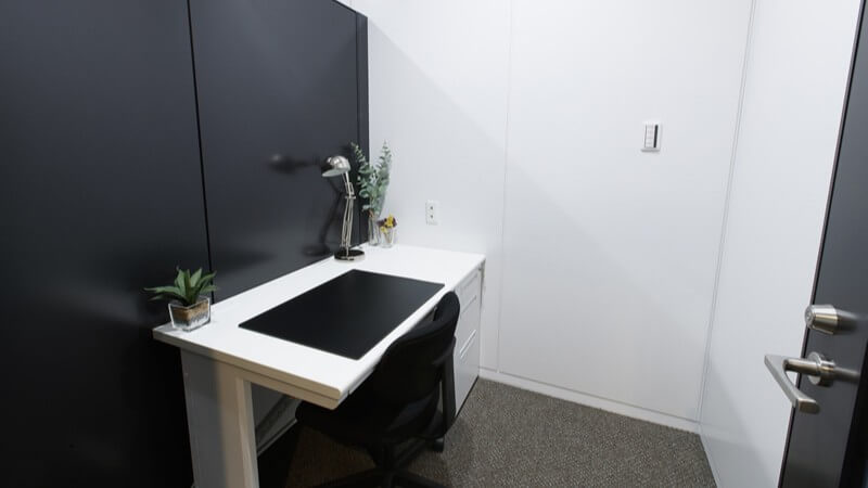 1名から3名までの専用個室は全部で21部屋あり、月額55,000円~利用することができます。個室は、白を基調としたシンプルで清潔感のある空間で快適に作業ができます。付帯サービスとしては、レンタルオフィスの基本的なサービスに加えて、不在時の来客や郵便物の対応、清掃・ゴミ捨てなどがあります。また、共有空間として専用ラウンジがあり、木材や暖色の照明などによって温かみを感じることができる空間となっています。