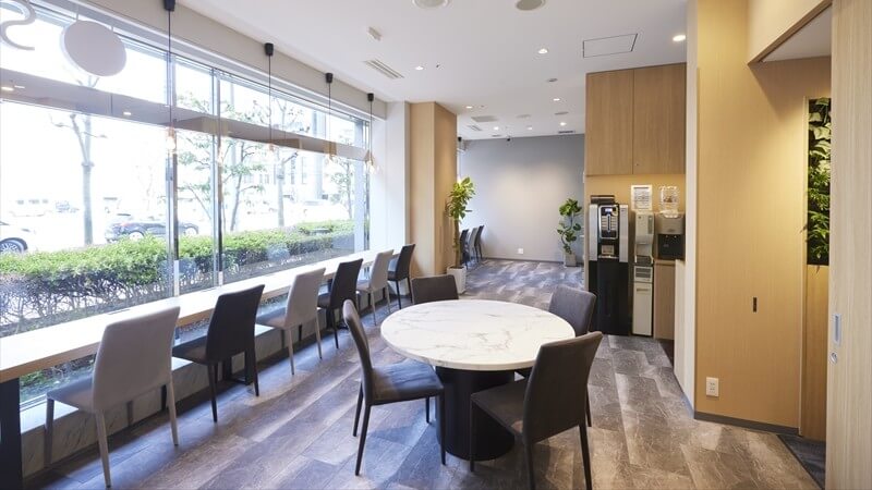 路面に面した1階にラウンジオフィスがあります。ラウンジには半個室型のミーティングブースもあり、会議室を借りなくても簡単な打ち合わせや面談・面接が可能です。また、複合機やシュレッダーも完備されています。