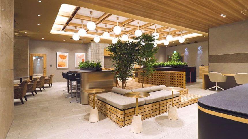 五感で自然を感じることができるバイオフィリックスデザインのラウンジが利用できます。個人作業ができるカウンター席と歓談や打ち合わせにも使えるテーブル席があり、コンセントも多く設置されています。個室会員であれば、いつでも利用可能です。
