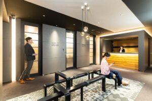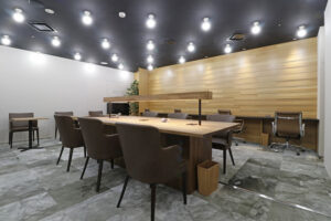 エントランスからつながる受付やウェイティングスペースはホテルさながらの上品な雰囲気です。受付ではフロントスタッフがお客様を温かくお出迎えしてくれるため、来訪者からの印象も抜群でしょう。オフィスは1~7名様用が80室ありバリエーション豊富なため、借り換えや借り増しもご希望に応じてご利用いただけることから、事業拡大を目指すお客様にぴったりのオフィスでしょう。ビジネスラウンジは隣の席との間隔が広めに保たれているため、集中してお仕事をすることができます。