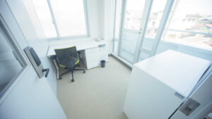 1名から利用できる個室が6室用意されています。シンプルな個室ですが、全て窓のある部屋のため明るい環境となっています。デスクと椅子は備え付けられているため、入室してすぐに仕事に入ることができます。もちろん各部屋ごとに鍵も付いています。