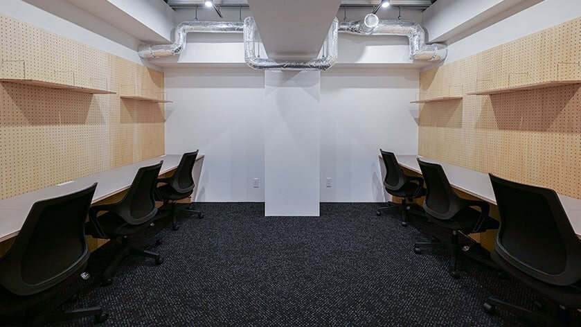 個室は5階と6階にそれぞれ設けられており、計4部屋となっています。個室会員はコワーキングスペースやラウンジなどの共用エリアも利用可能です。契約期間は2年間で、条件が整い次第、即日で利用を始めることもできます。初期費用は契約事務手数料および礼金(各賃料の1か月分)です。